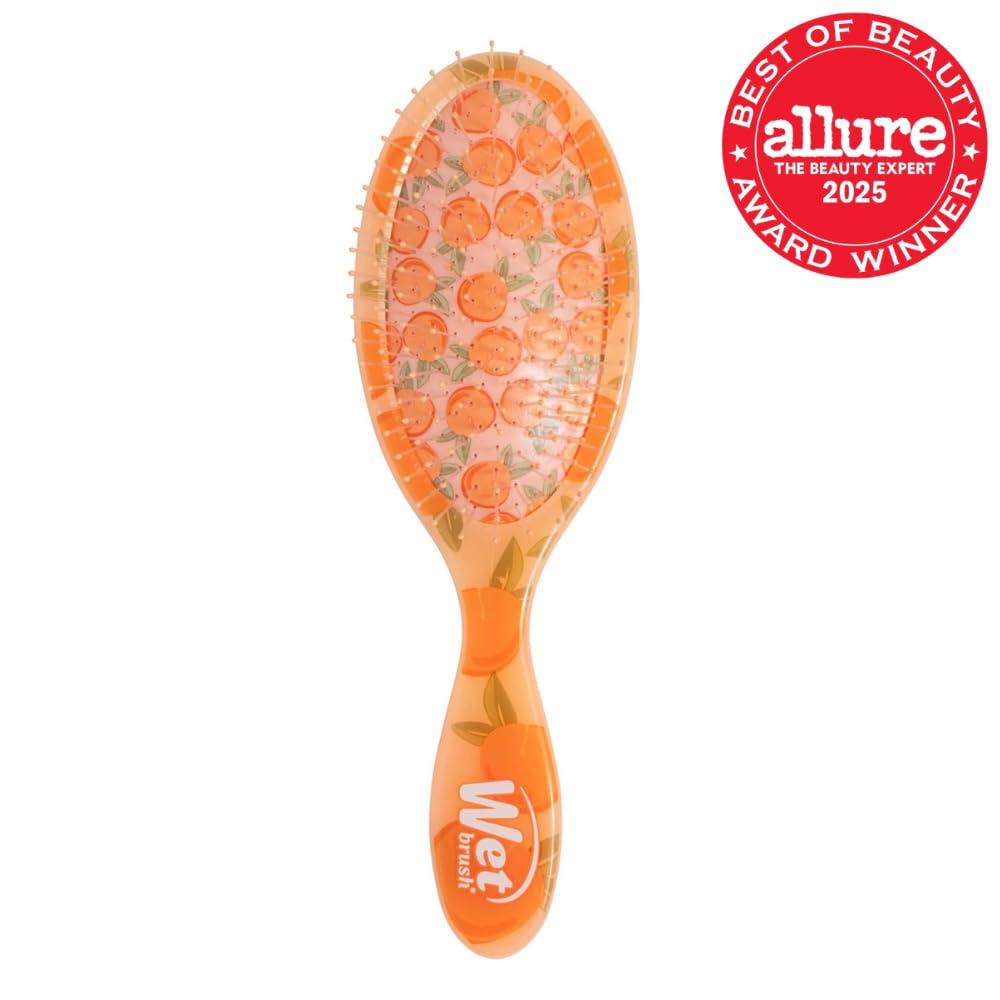 Wet Brush Mini Detangler Hair Brush, Lemon (Tutti Fruitti), Detangling Travel Hairbrush, Ultra-Soft IntelliFlex Bristles Glide Through Tangles with Ease, Pain-Free, All Hair Types, Limited Edition(Peach)