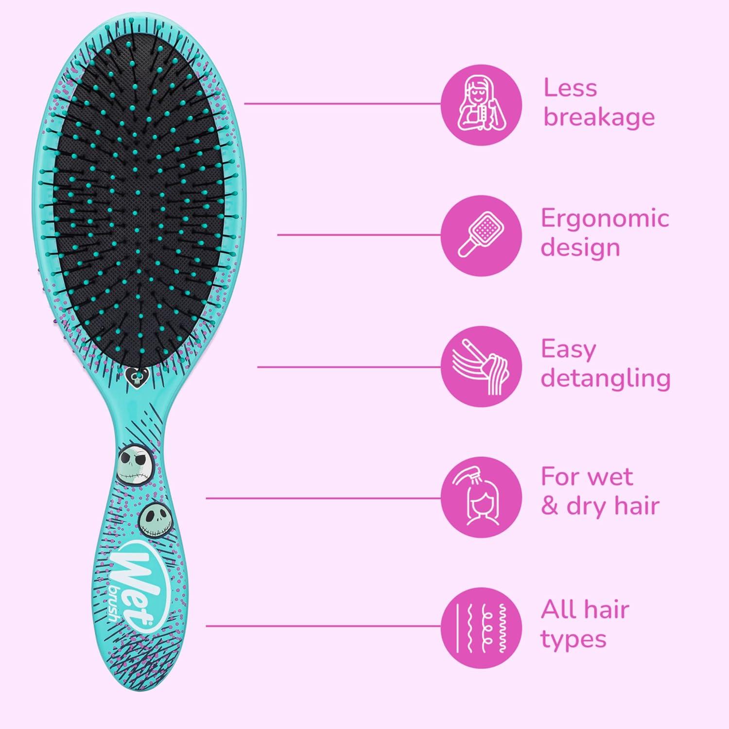 Wet Brush Detangle & Style Duo Kit, Sally (Nightmare Before Christmas) – Ultra-Soft IntelliFlex Bristles – Detangling Brush Glides Through Tangles For Wet & Dry Hair, 1 Hair Brush & 1 Coil Scrunchie(Jack)