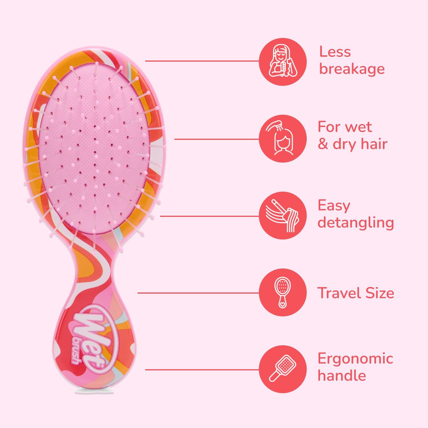 Wet Brush Mini Detangler Hair Brush, Rainbow (Sun Days), Detangling Travel Hairbrush, Ultra-Soft IntelliFlex Bristles Glide Through Tangles with Ease, Pain-Free, All Hair Types, Limited Edition(Sun Days Ice Cream)
