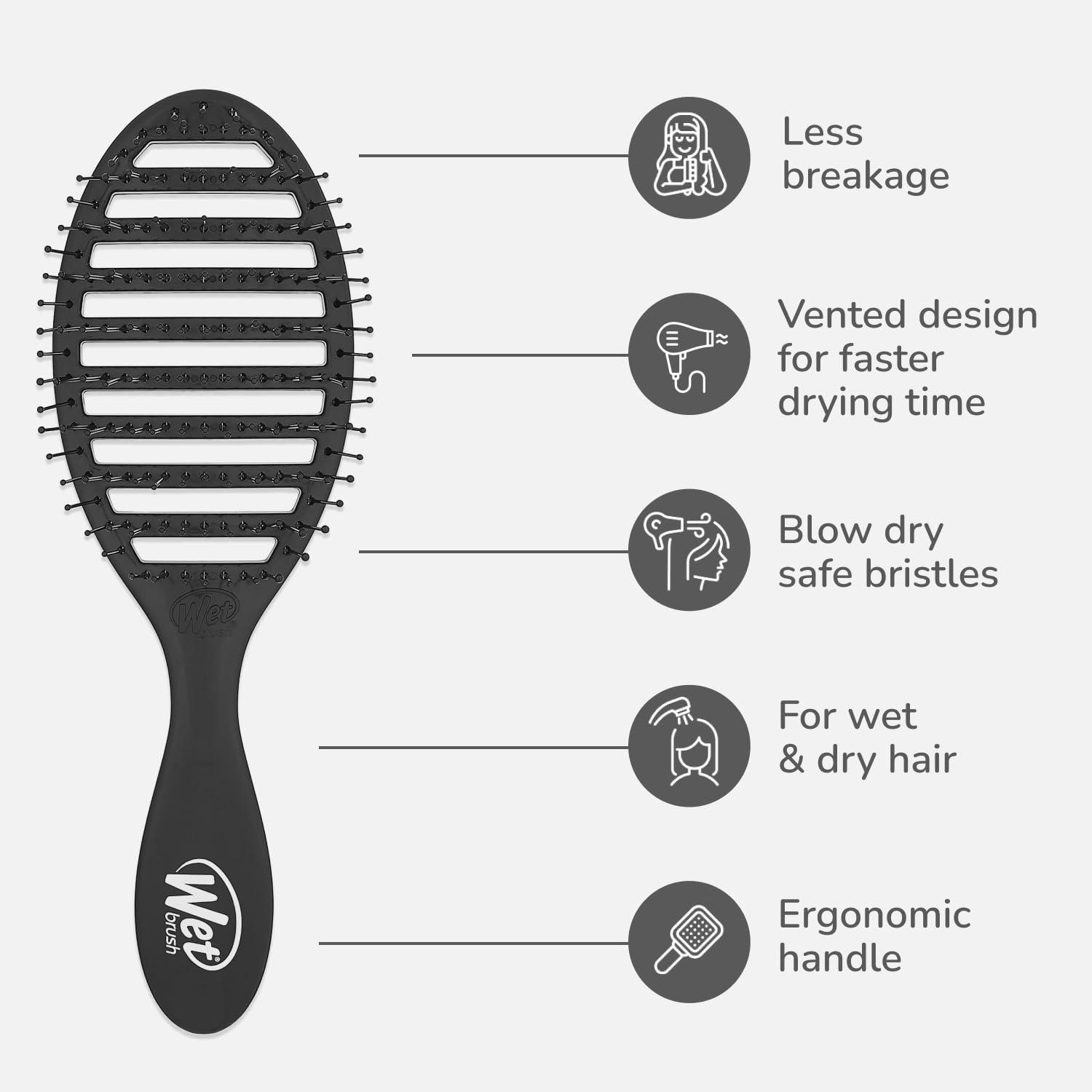 Wet Brush Speed Dry Hair Brush, Blow Dry Safe Bristles & Vented Design For Faster Drying Time, Ergonomic Handle, Reduces Breakage & Detangles All Hair Types, Limited Edition Prismatic Glow Pink(Black)