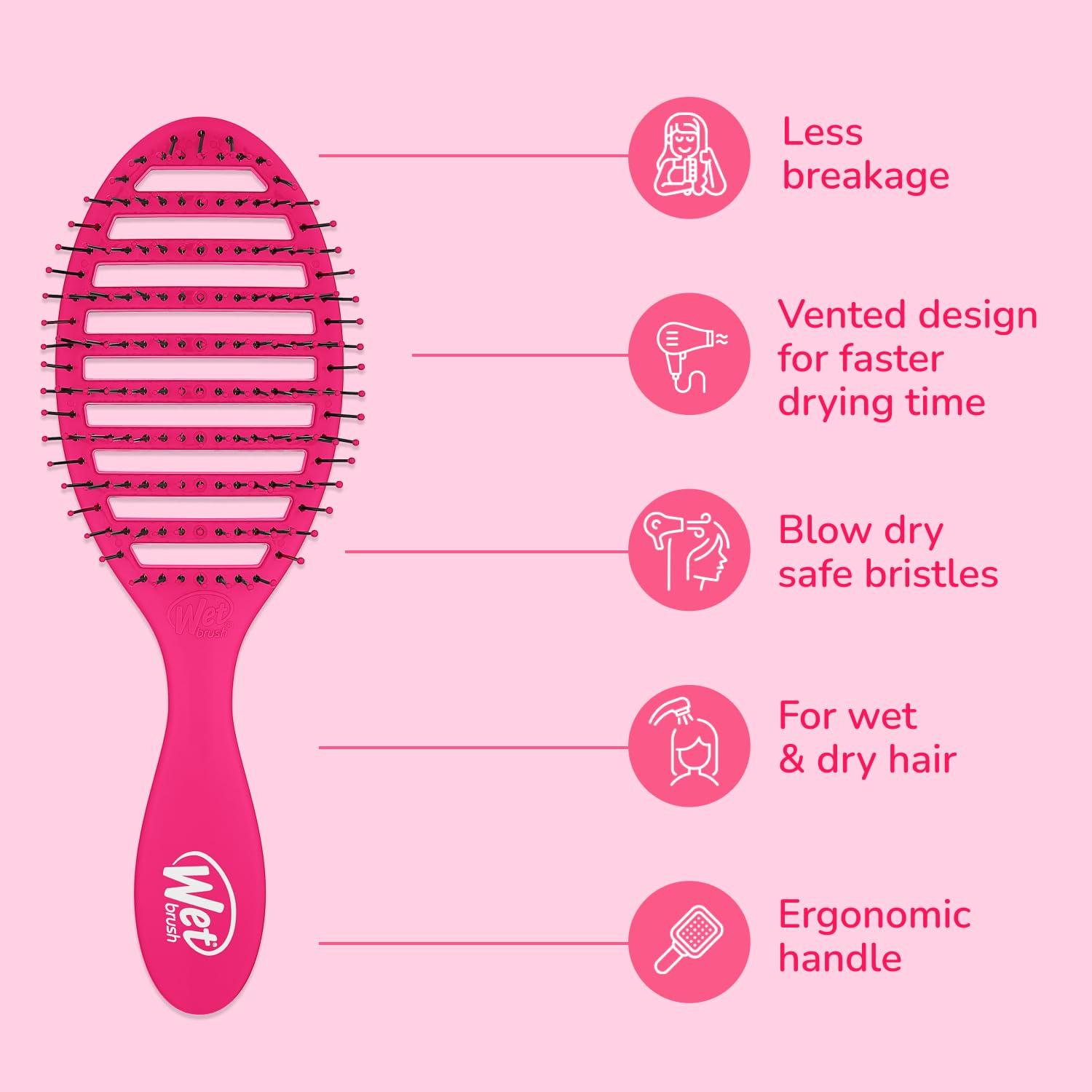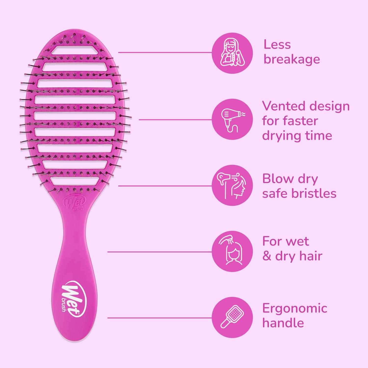 Wet Brush Speed Dry Hair Brush, Blow Dry Safe Bristles & Vented Design For Faster Drying Time, Ergonomic Handle, Reduces Breakage & Detangles All Hair Types, Limited Edition Prismatic Glow Pink(Prismatic Glow Pink)