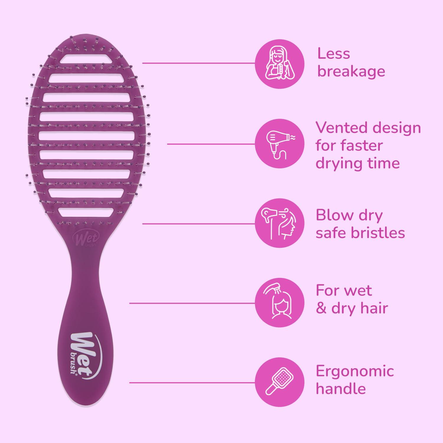 Wet Brush Speed Dry Hair Brush, Blow Dry Safe Bristles & Vented Design For Faster Drying Time, Ergonomic Handle, Reduces Breakage & Detangles All Hair Types, Limited Edition Prismatic Glow Pink(Prismatic Glow Purple)