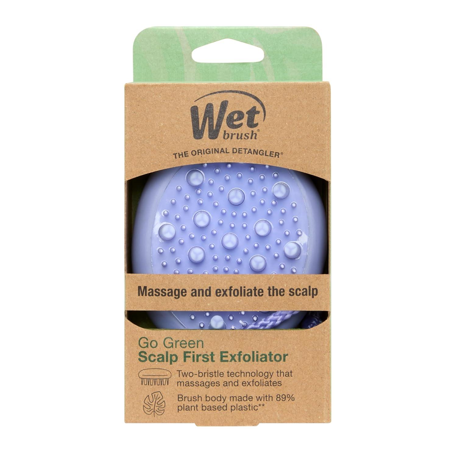 Meet the Wet Brush® Go Green™ Scalp First Exfoliator Create a spa-like experience at home with this scalp exfoliator and massager blended with trace amounts of lavender oil. Its brush body is made with 49% plant-based plastic. The rope hook allows you to conveniently hang it in your shower.